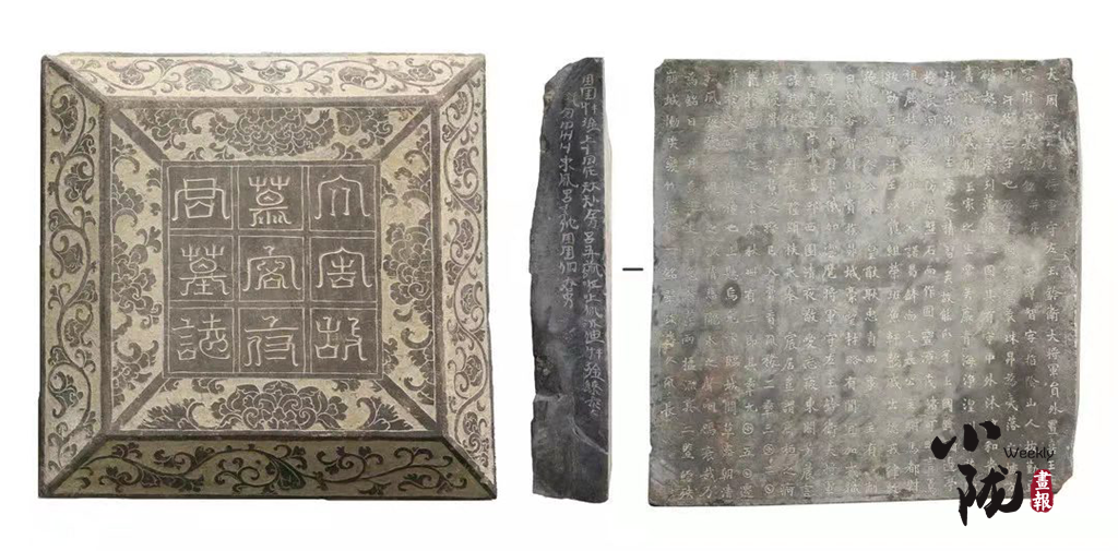 甬道正中出土墓志一合,时代明确,内容丰富,显示墓主为吐谷浑末代国王慕容诺曷钵第三子,“大周云麾将军守左玉钤卫大将军员外置喜王”慕容智。墓志首次提及武威南山区“大可汗陵”的存在,墓志左侧面还刻有两行利用汉字偏旁部首合成的文字,初步判断为吐谷浑文,是目前所见依据汉文创造的年代最早的游牧民族文字。