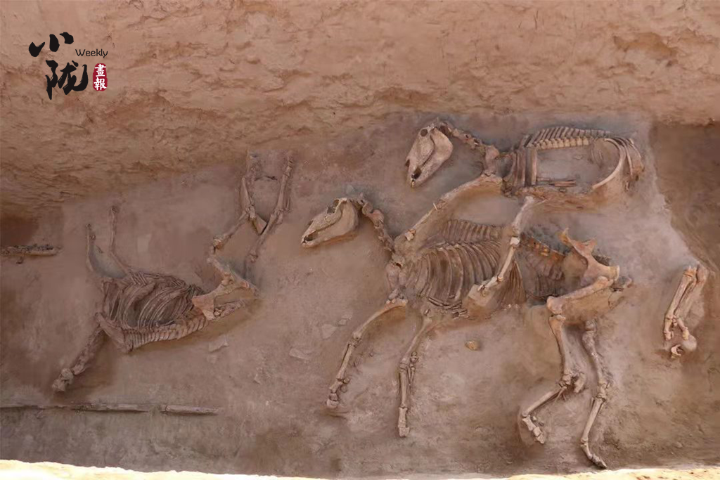 墓道内均有整马殉葬,1-3匹不等,亦见有烧殉的羊骨、牛骨等。墓室内出土有漆、木、陶、石、革及各类金属器等随葬品290余件,以残漆木器居多,部分漆木器上有彩绘,并贴有金、银箔,做工精美,装饰华丽。