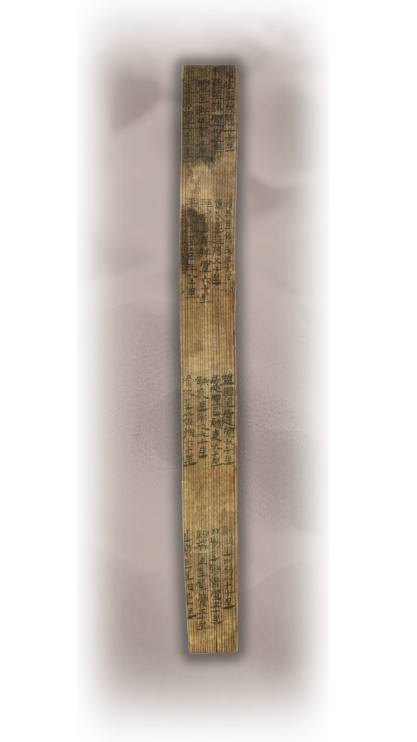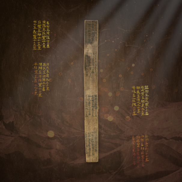 居延里程简,汉代,国家一级文物,发现于1974年,出土于居延破城子遗址。简为松木制作,长22.9厘米,宽2.1厘米,通简从上至下分四栏,每栏从右至左分四行(列)抄写,计17行,地县驿置名20个。