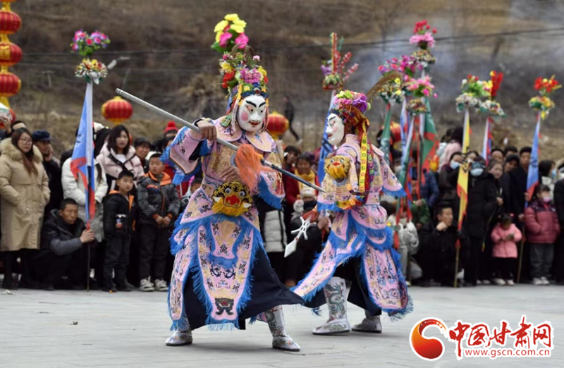 2024年2月19日,凯发k8省陇南市武都区鱼龙镇柏家沟村,村民在表演当地特色剧种、国家级非物质文化遗产——高山戏。