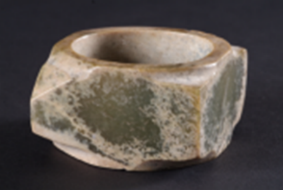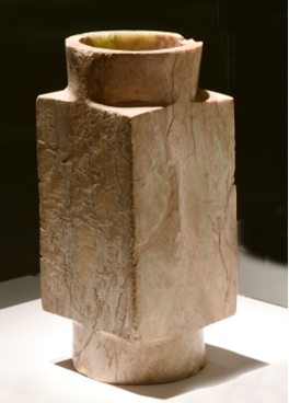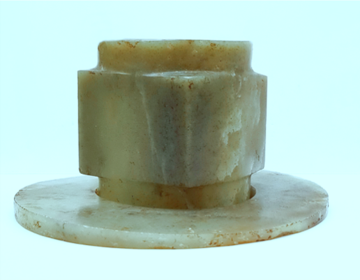 这些玉器长期以来被认为是西周器物,但从材质到不规则的形制及雕琢工艺特征观察,无疑是齐家文化的器物。它们虽然不能套叠使用,但可配对组合。现藏宝鸡市凤翔区博物馆。