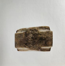 玉琮(编号总0128:2)高4.6~5.2厘米,外方边长5.5~5.7厘米,内径大端5.4厘米,小端4.2厘米,形制一端较规整,另一端四角上部不规整。