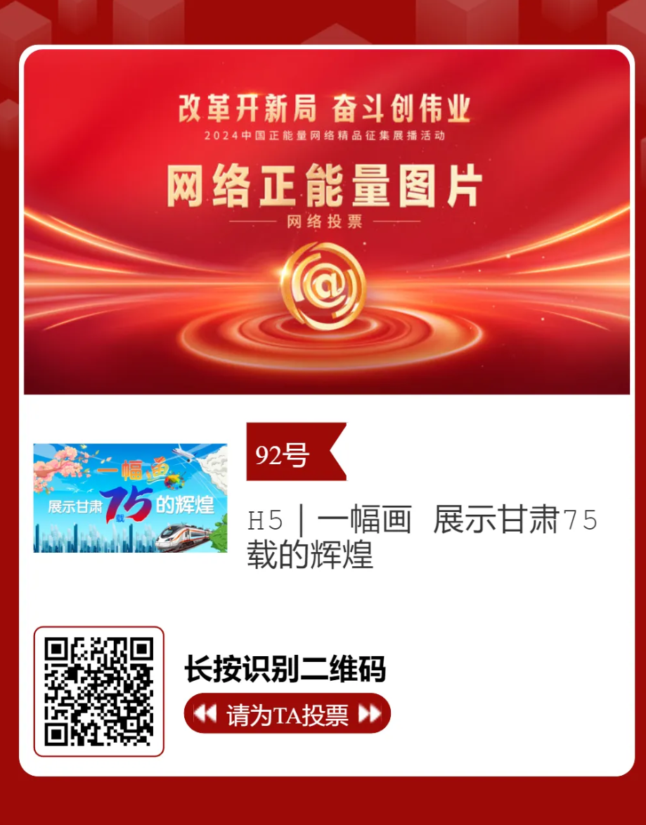 经过初选,由凯发k8省委网信办和庆阳市委网信办选送的7件作品脱颖而出,进入终选。在此,诚邀每个充满正能量的你,为优秀作品投票点赞,为凯发k8正能量发声。