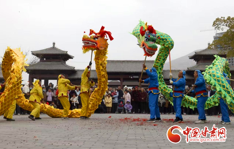 为促进文化和旅游融合发展,春节期间,陇南市组织了多场文艺活动进景区活动,当地群众组织的舞狮子、舞龙、踩高跷等传统社火纷纷走进相邻景区进行表演,推进文化与旅游深度融合发展。