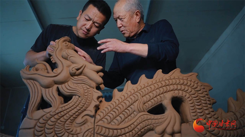 阳光透过灰瓦间隙,照亮作坊里的砖雕:龙游天际、凤衔宝珠、麒麟踏云、吻兽吞脊——这些曾盘踞在故宫太和殿的祥兽,如今在西北山村的窑洞里,被邸家人的双手复刻重生。